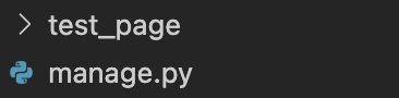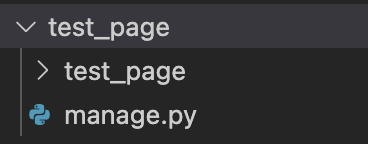 이 명령어를 작성하면 장고가 자동으로 폴더를 하나 만드는데 아래처럼 생겼다.test_page안에 다시 test_page라는 이름과 manage.py가 들어가 있는데 우리는 test_page안에 있는 폴더랑 파일을 밖으로 꺼내주도록하자.