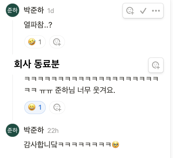 요즘은 회사사람들이랑 꽤 친해진거 같다. 이번년도가 회사 다닌지 벌써 3년째인데 이제야 그런 생각이 든걸 보고 다시 한번 나는 마음을 여는데 꽤 오래 걸리는 사람이라는 생각했다.( 이건 이미지다.. 이런 이미지에서 벗어나야한다.) 회사사람들과 친해지면서 중고등학교 때 하던 고민을 다시 하기 시작했다. 학창시절 가끔 아침 조회 시간전에 스스로를 다짐하곤 했다. "준하야 오늘은 진중하게 한번 가보자. 진중한 이미지야 알겠지" 하지만 그 다짐을 하고 얼마 지나지 않아 까맣게 잊고 똑같이 장난스럽게 행동했다.