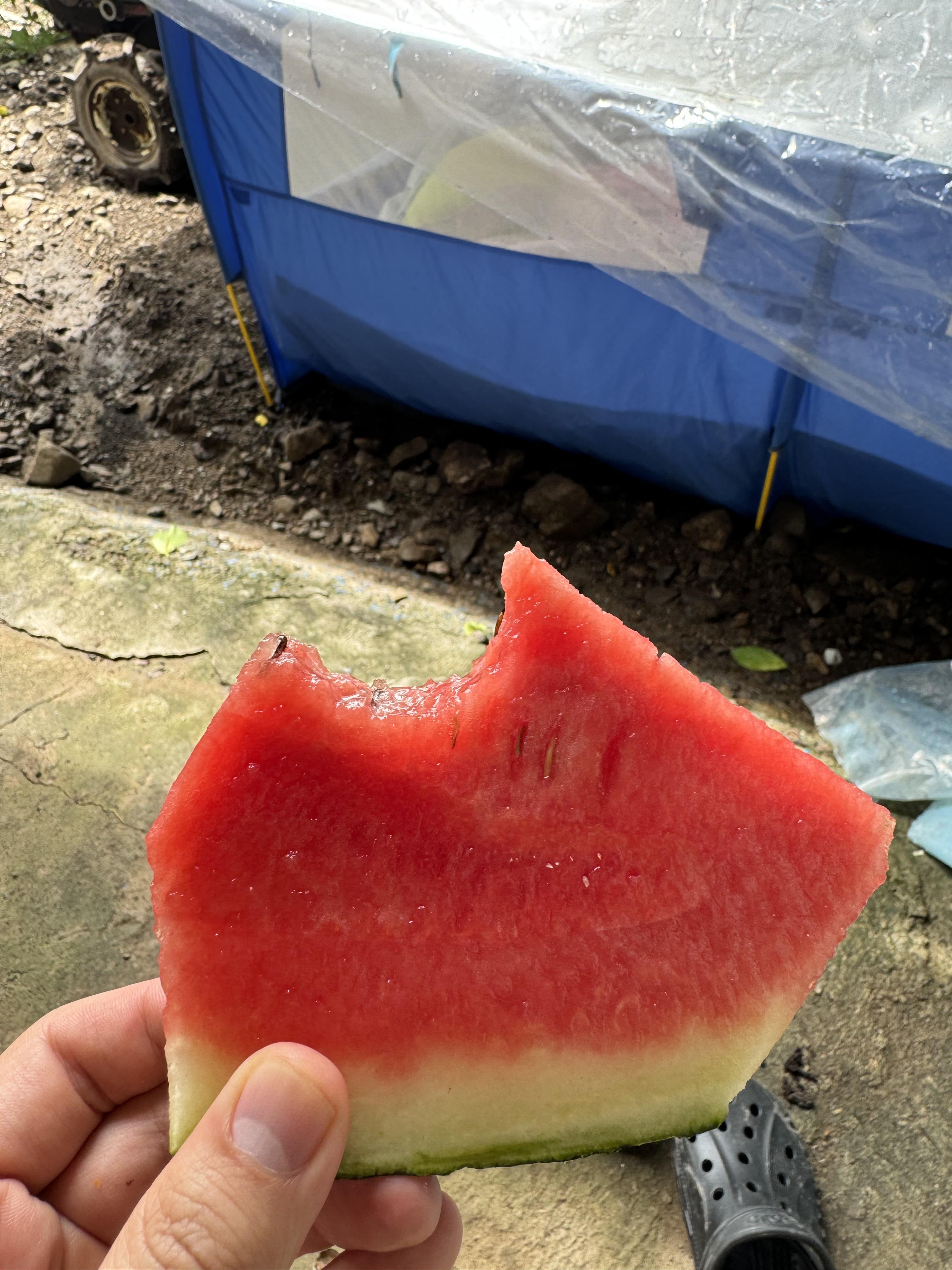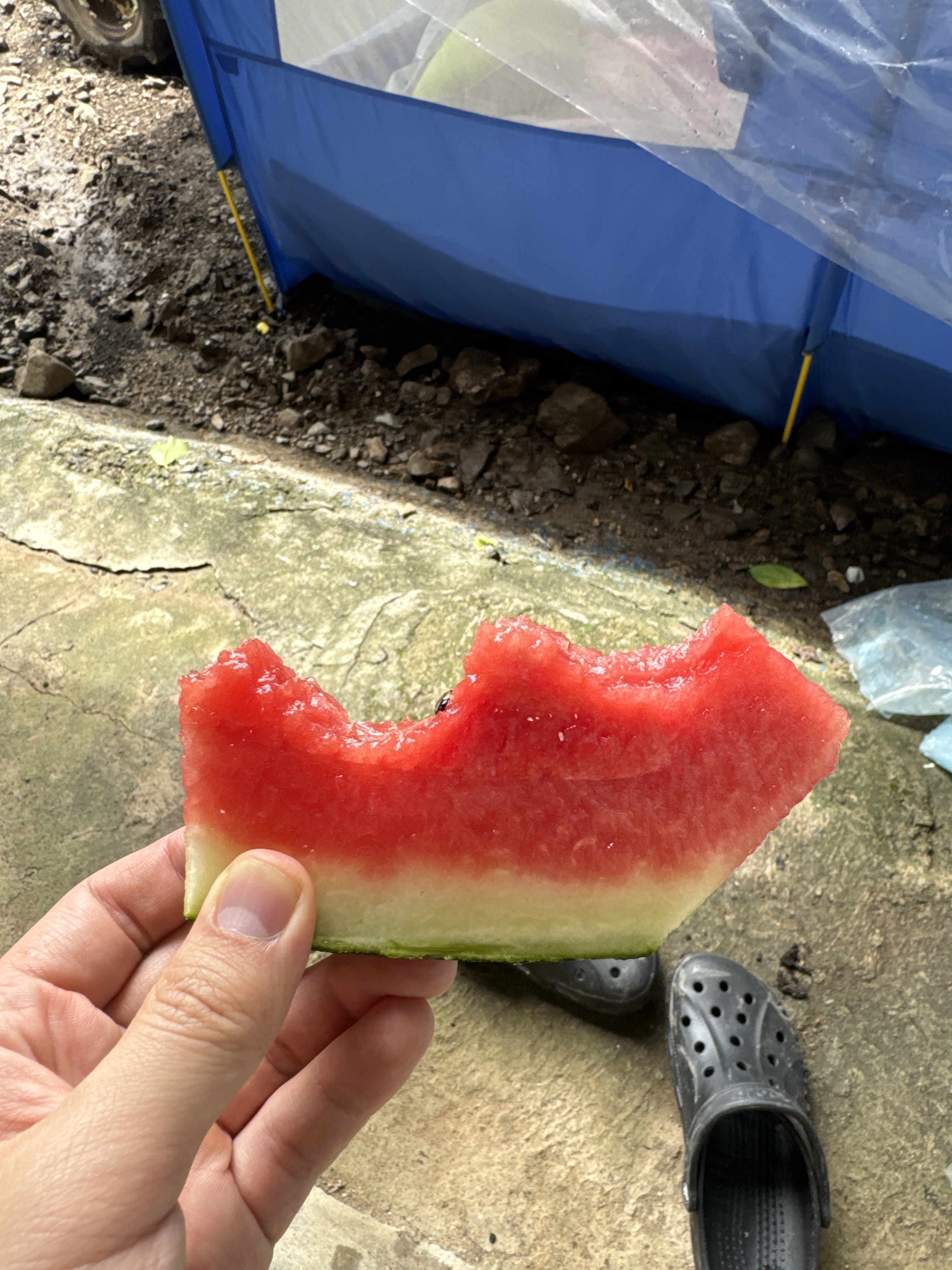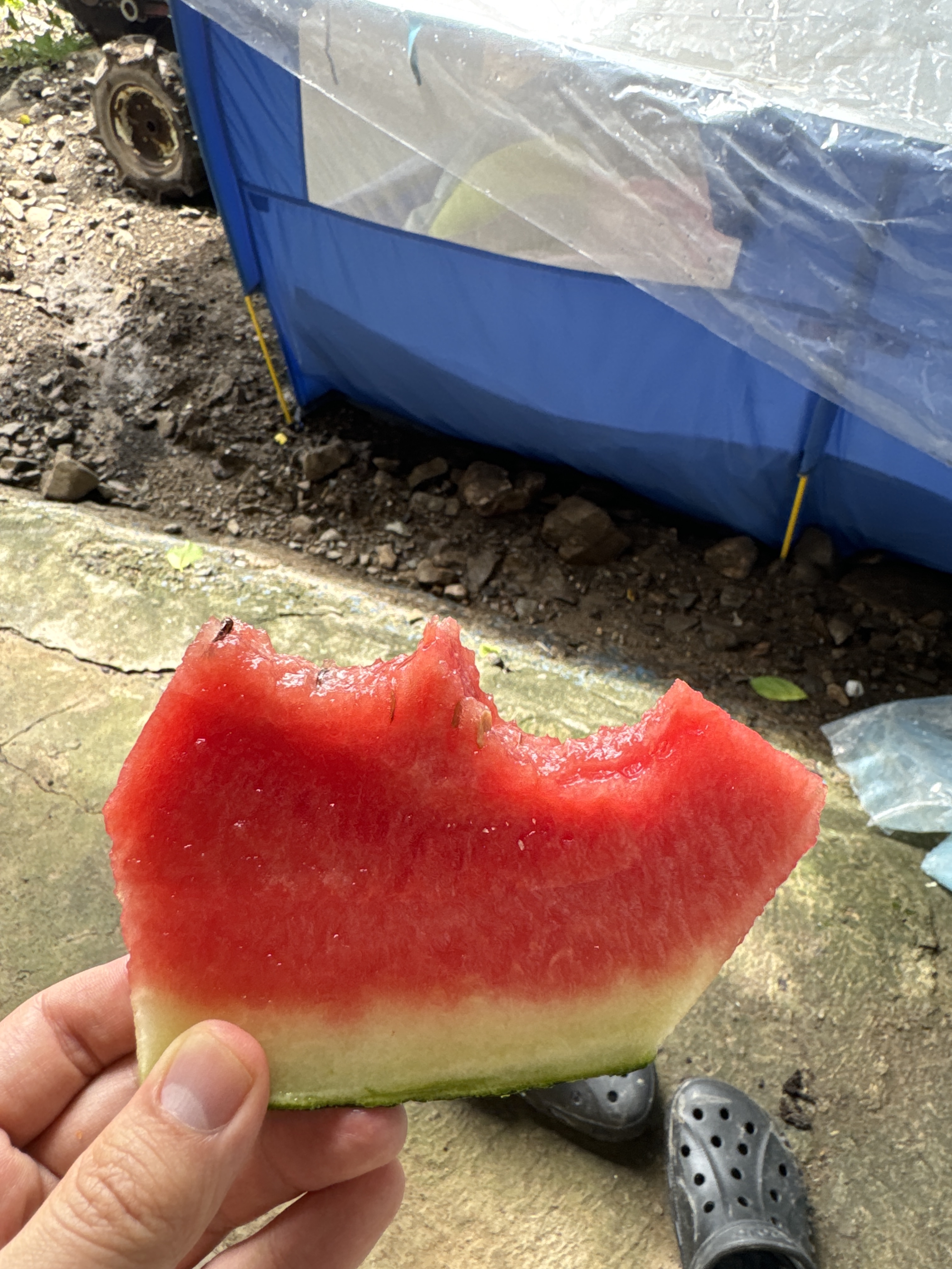 숭덩숭덩 대충 썰어 은쟁반 같은 곳에 담긴 수박