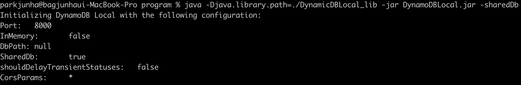 java -Djava.library.path=./DynamicDBLocal_lib -jar DynamoDBLocal.jar -sharedDb