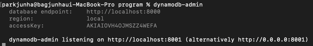dynamodb는 Admin 페이지를 제공하는데 npm을 이용해서 dynamodb-admin 을 받아주도록 하자