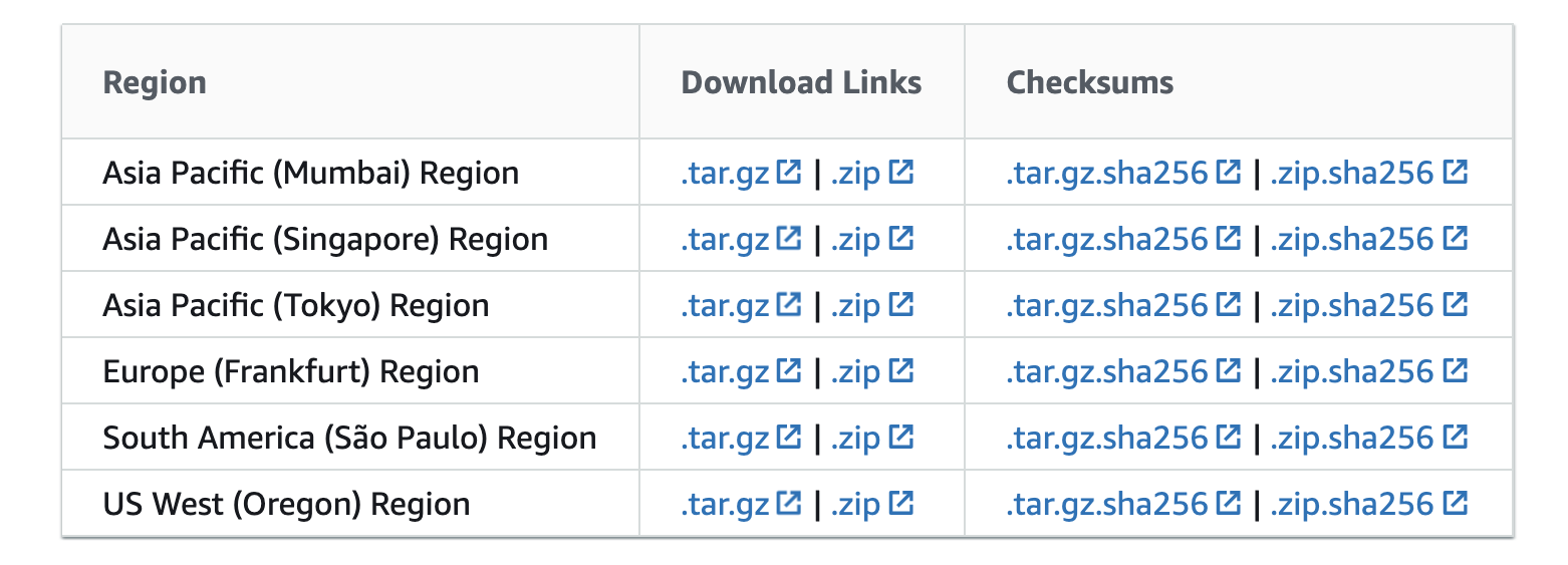 다양한 Region이 있지만 아무거나 받아서 실행 시켜주자. 직접 다운받아서 압축을 풀어줘도 되지만 아래처럼 wget, tar 명령어를 통해 압축을 풀어주면 된다.