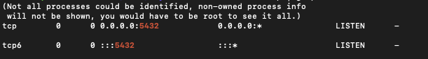 sudo netstat -ntlp | grep 5432